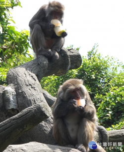 夏天熱爆了 台灣獼猴大啖「水果冰」消暑