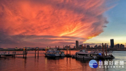台北黃昏現「火燒雲」 與藍天形成強烈對比