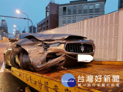 市民高架過彎失控自撞 500多萬「海神」車頭半毀