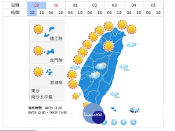 (圖/翻攝中央氣象局) 根據中央氣象局報導,周末天氣回暖,西半部溫度最高溫可來到29到30度,東半部地區約26到28度,然而因為輻射冷卻效應的影響,北部地區溫度早晚變化大,建議民眾外出時身上需要帶件外套,以防著涼。 根據中央氣象局指出,因為鋒面遠離,水氣減少的關係,這個周末會是出太陽的好天氣,西半部氣溫最高可以來到29到30度,東半部地區大約是2...... [閱讀更多]