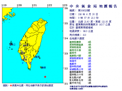 東南海域規模6.0地震 蘭嶼震度4級、台南3級
