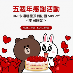 LINE五週年感謝回饋,熊大兔兔都半價!