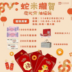 【今傳媒/記者黃誌寬報導】元宵節賞花燈,還能做公益!新竹市稅務局訂於2/8日上午10時至下午2時,在稅務局1樓大廳舉辦「蛇米攏賀慶元宵捐發票抽福袋」活動,現場不僅有機會抽中價值千元的超值福袋,還有燒腦租稅問答等您來挑戰。 新竹市稅務局表示,稅務局在元宵節前夕推出元宵節抽福袋活動,讓市民朋友在開春就能博個「好彩頭」,精心準備100份「蛇米攏賀」限量福袋,內容超值豐富,有2...... [閱讀更多]