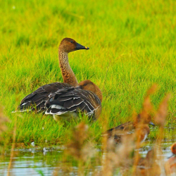 【今傳媒/記者李祖東報導】被國際保育聯盟列為「極度瀕危」的青頭潛鴨,再次現蹤茄萣濕地!青頭潛鴨(Aythya baeri)主要繁殖地在貝加爾湖以東地區、中國東北及華北一帶。秋冬季節會飛到日本、朝鮮半島、中國黃河及長江流域中下游地區。據台灣各地鳥會的紀錄,每年青頭潛鴨出現在台灣度冬的紀錄少於10隻。 台灣位於青頭潛鴨度冬區的邊緣地帶,是稀有冬候鳥,沒有繁殖紀錄。由於青頭潛...... [閱讀更多]