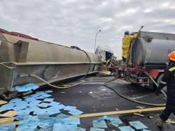 國道1號南向339k車禍造成氫氧化鈉槽車翻覆 高市環保局緊急處置 | 今傳媒 JNEWS