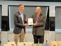 【今傳媒/記者李祖東報導】世界最大的海上圖書館船隊之一「望僕號」(Doulos Hope)在停靠高雄港的倒數第2天,10日高市圖代表團登船參訪,並進行跨國文化交流的贈書儀式。此次贈書共100冊,內容包含高市圖自製出版品、「好繪芽」得獎作品、以及李金鴦館長個人著作《大籤世界說故事》等。充分展現高雄在地故事與創作的多元面貌,也向國際讀者傳遞南台灣的文化魅力。 李金鴦館長表示...... [閱讀更多]