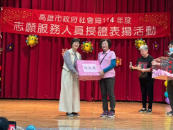 【今傳媒/記者李祖東報導】高雄市政府社會局今(4)日在鳳山行政中心大禮堂舉辦114年志願服務人員授證表揚典禮。社會局葉玉如副局長親自頒發志工受聘證書,感謝志工夥伴們長期以來熱心助人,並特別頒發「志工服務35年榮譽獎」給洪玉芳、林正琴、李苑平、林全錄、陳惠理、劉麗華等志工,表彰他們長期不懈的貢獻與努力。 社會局志工團自71年成立以來,已走過42個年頭,目前有10個志工團隊...... [閱讀更多]