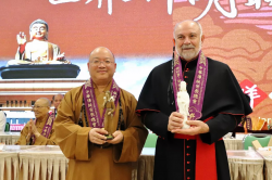 【今傳媒/記者李祖東報導】2024年世界神明聯誼會將於25日熱鬧登場,廣邀全球各大宗教共襄盛舉,締造七大宗教天主教、佛教、道教、伊斯蘭教、日本神道教、印度教、美國傳統宗教、1700名代表齊聚的盛況。七大宗教代表24日在佛光山佛陀紀念館五觀堂相見歡,一片祥和歡喜,共同為世界祈和平。 中華傳統宗教總會總會長暨佛光山住持心保和尚致詞表示,看到大家十分歡喜,每個人的臉上充滿了榮...... [閱讀更多]