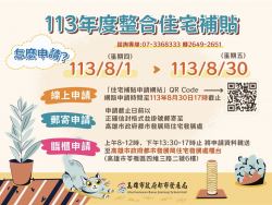 【今傳媒/記者李祖東報導】113年度自購住宅貸款利息補貼及修繕住宅貸款利息補貼,已於8月1日起開放受理申請,截止日為8月30日,歡迎在高雄市有購屋或修繕房屋需求,且符合資格之民眾把握機會踴躍申請。 高雄市政府都市發展局長吳文彥表示,住宅補貼是政府照顧有購屋、修繕房屋需求民眾的重要政策,每年申請者眾多。以去年為例就有約2千件申請,今(113)年度高雄市住宅補貼受理期間為8...... [閱讀更多]
