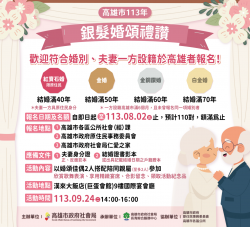 「高雄市113年銀髮婚頌禮讚活動」8月2日前受理報名 | 今傳媒 JNEWS