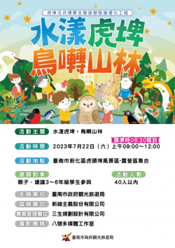 【今傳媒/記者張淑慧 報導】虎頭埤風景區擁有豐富生態,一直是臺南推廣戶外悠遊的重點景區。臺南市長黃偉哲表示,市府積極爭取中央補助改善園區設施,團隊也獲得2023園冶獎殊榮。現正進入第二期觀光建設,誠摯邀請民眾共同推廣永續觀光。日前舉行的「水漾虎埤。鳥囀山林」活動,由生態專家分享台灣特有草鴞及貓頭鷹生態,並帶領民眾實地觀察鳥群,使用桌遊增進環保理念。活動受到熱烈迴響。 觀光局長...... [閱讀更多]