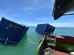 天使輪於高雄港外海船艙進水半沉,船上空貨櫃落海漂流,高雄港緊急動員打撈 | 今傳媒 JNEWS