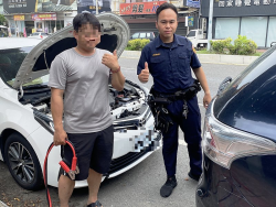 〔今傳媒/記者吳玉芬報導〕嘉義市政府警察局第一分局竹園派出所警員鄭凱旭、陳仕鑫,日前執行午後巡邏勤務時,於巡經中興路與博愛路口處,見前方博愛路往東行進中的車流行駛速度緩慢,且車輛閃爍著煞車紅色尾燈有異,隨即把巡邏警車行駛靠近查看,原來是有一部白色自小客拋錨停卡在慢車道上,現場2員警隨即將亮著警示燈的巡邏車停擋與擺放交通圓錐警示,並疏導其他車輛安全通行後,協助35歲張姓男駕駛...... [閱讀更多]