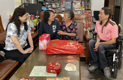【今傳媒/記者李祖東報導】高雄市社會局長謝琍琍今(12)日前往榮獲第三十屆全國十大傑出愛心媽媽「慈暉獎」的黃蔡秋蘭女士家中,感佩她照顧身障兒超過一甲子的母愛與付出,並祝福母親節快樂。 「媽媽,謝謝您!不辭辛勞的照顧我,讓我能在長大後將這份愛傳達出去,母親節快樂!」61歲的阿斌充滿感激的對媽媽說。阿斌是重度身障者,因小兒麻痺出生三個月身體就嚴重萎縮,經常出入醫院,需要高密...... [閱讀更多]