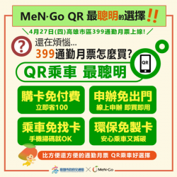 【今傳媒/記者洪欣媚報導】適逢溫馨五月天到來,高雄市政府交通局特別推出399通勤月票母親節感恩活動, 112年5月14日母親節當日下午4時起,至捷運巨蛋站、高雄車站及左營站攤位洽詢或申辦399月票「女性」朋友,即可獲得限量康乃馨!另外,在捷運高雄車站及左營站只要是「親子」不分年齡前來申辦購買月票,即有機會獲得限量母親節精美小禮物,數量有限,送完為止! 交通局長張淑娟表示,高雄...... [閱讀更多]