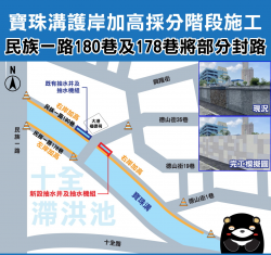 【今傳媒/記者李祖東報導】113年7月下旬凱米颱風重創高雄,天文大潮及超大豪雨造成寶珠溝溢堤,三民區德山街一帶因地勢低漥,多處大樓地下室積淹水而財損嚴重,水利局災後積極研擬非對稱治理方案,並獲水利署補助1,200萬元經費改善,工程預計在今(114)年2月開工,寶珠溝局部堤岸加高總長約333公尺,平均加高幅度約0.2至0.5公尺不等,完工後可降低溢堤風險,減少人民財產損失。 ...... [閱讀更多]