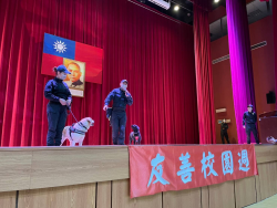 【今傳媒/記者謝榮浤報導】 為遏止校園霸凌、毒品、暴力事件發生,台中女中於2月17日辦理校園安全宣導活動,校長洪幼齡特別邀請台中市刑大警犬隊及台中市警察局第一分局前來宣導,其中台中市刑大警犬隊精心安排警犬緝毒情境模擬融合反毒宣導,讓在場學生們增加守法觀念更了解警察緝毒工作的內容。 反毒宣導現場由資深警犬TINY在領犬員的引導下,透過模擬毒品氣味進行緝毒工作模擬示範,...... [閱讀更多]