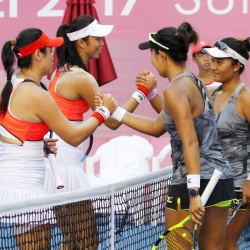 中華隊網球女將詹詠然、詹皓晴姊妹昨天在世大運女雙決賽碰上泰國瓦拉恰亞姊妹花,最終以6:1、7:5擊敗對手,奪下世大運女網雙打金牌,而在賽後因為詹詠然身體不舒服而只有詹皓晴出席記者會。 以女雙摘金以後,原本詹詠然將與謝政鵬參加混雙四強賽,不過因為詹詠然暈眩症發作,而放棄這場比賽,最終替中華隊拿下一面銅牌。 (謝淑薇) ...... [閱讀更多]