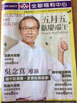 今早知名導演吳念真在臉書上PO出一張全聯生活誌DM,上面有他的照片。吳念真調侃全聯企業省錢省過頭,竟然未知會他就擅用肖像,還附上他從未說過的話做標語。 PO文一出,短短兩小時左右就有3萬多人發表心情、3500多人轉發。根據《聯合新聞網》,全聯對此事件正在開會瞭解中。 吳念真PO文如下: 徐總裁,上星期我出國了,朋友傳了l...... [閱讀更多]