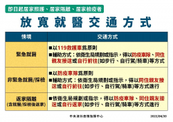 中央流行疫情指揮中心今(20)日表示,考量COVID-19本土疫情升溫,為確保民眾於居家隔離或檢疫期間,或確定病例於居家照護期間,若有相關醫療需求必須往返醫療機構時,可以及時前往,自即日起放寬有就醫或採檢需求之居家照護、居家隔離、居家檢疫者之交通運送方式,以保障病人就醫安全以及保全醫療運送量能。 因緊急就醫違反電子圍籬規定 經確認後不開罰 居家照護、居家隔離、居家檢疫者若有就醫...... [閱讀更多]