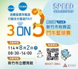 新竹市114年稅務盃3對3鬥牛籃球賽將於8月2日在新竹市立體育館熱鬧開打,15日起至7月8日開放報名,歡迎各界籃球好手組隊參加,一起來鬥牛,名額有限,額滿為止。 新竹市稅務局表示,稅務盃三對三鬥牛籃球賽今年邁向第2個10年,為實踐「友善、永續、創新、智慧、夥伴」的施政理念,本屆以「永續風城SPEED」為宣導主題,結合保護「Earth(地球)」(諧音20)的概念,...... [閱讀更多]
