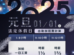 元旦(1月1日、中華民國開國紀念日)為法定休假日,僱主應依勞動基準法給假並給薪;如該日適逢勞工的休息日或例假日,應由勞雇雙方協商擇期補假。若僱主經勞工同意於法定休假日或補假日出勤,應依法加倍給付出勤工資。 勞工局表示,若法定休假日經勞資雙方協商調移至其他工作日實施,應獲得個別員工同意。經調移後,因原休假日成為工作日,勞工於該日出勤僱主無需支付加倍工資。然而,僱主...... [閱讀更多]