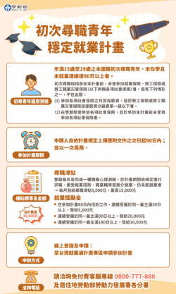 去年6月畢業於護理系的王庭育,急需工作卻不知職涯方向,歷經近半年的茫然尋職後,求助於勞動部永康就業中心,並搭配申請「初次尋職青年穩定就業計畫」,不僅順利找到幼兒園助教工作,還可領4.5萬元獎勵金,大讚勞動部為她職涯點上一盞明燈! 根據行政院主計總處資料顯示,20至24歲青年失業率為11.64%,遠高於其他勞動年齡層,推論其主因是畢業青年初次尋職,就業方向不明確。...... [閱讀更多]