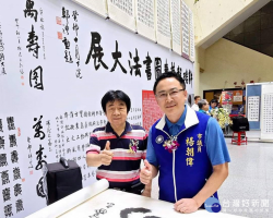 許瑞龍萬壽圖書法大展 ,市議員楊朝偉前往道賀(楊朝偉臉書提供) 許瑞龍老師於二十七日舉辦「萬壽無疆」書法大展開幕茶會,許老師出生於嘉義朴子,現定居於桃園市八德區,窮畢生精力練就書寫功夫,挑戰萬壽篆書大作及數十幅近作展出,藉此分享切磋、以字會友,傳承書法藝術文化,於一一三年七月二十四日至八月十一日,在桃園文化局一樓大廳展出約四十件精彩作品,廣邀市民龍年欣賞「萬壽...... [閱讀更多]