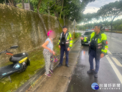 颱風天老婦電車卡路中,暖警冒雨助返家 凱米颱風來襲!23日16時林姓婦人騎乘電動自行車行經龜山區振興路時電動車突然電力不足停在路中,因為天氣下起雷陣雨,頓時讓林姓婦人成為落湯雞,剛好龜山分局大埔派出所警員洪上芠騎乘警用機車經過下車關心,得知婦人電動車沒電無法啟動,見林姓婦人全身被雨淋濕,立即通報線上巡邏警網所長劉翁宇、警員宏洪承揚到場協助。 劉所長瞭解狀況...... [閱讀更多]