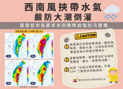 依據中央氣象局預報資料顯示,南部地區昨(2)日出現天文大潮,又受卡努颱風影響及西南風挾帶豐沛水氣,市長黃偉哲要求市府團隊及區公所,全面巡查排水渠道並預佈抽水機組及砂包等,嚴防沿海低窪地區海水倒灌導致積淹水災情。 市長黃偉哲指出,卡努颱風位置目前在臺灣東北方海面上,對臺南地區雖無直接影響,但西南風持續增強將帶來雨勢,根據預報資料顯示,今(3)晚起至明(4)日臺南地...... [閱讀更多]