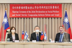 外交部常務次長俞大㵢於昨(11)日在外交部主持「台以社會福利暨社會工作合作共同宣言」簽署儀式,由駐台北以色列經濟文化辦事處代表柯思畢(Omer Caspi)及駐以色列代表李雅萍以視訊連線方式分別代表兩國政府進行異地簽署;衛生福利部政務次長李麗芬及以色列社會福利部總司長莫倫(Sigal Moran)也應邀出席致詞並共同見證儀式。希望透過兩國對自由民主普世價值的捍衛,以及對良善治理與人權法...... [閱讀更多]