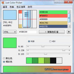 前幾天才介紹了一款很不錯的選色器【Instant Color Picker】,今天在分享一款也很不錯的【Just Color Picker】,其實縣在很多選色軟體似乎都越來越方便,尤其都包含歷史紀錄與複製色碼的基本功能,除此之外還有相似色與對比色的參考,這對美術以及網頁設計人員來說都是很棒的功能。 Just Color Picker這套軟體內建多國語系,如此一來大家應該都可以比...... [閱讀更多]