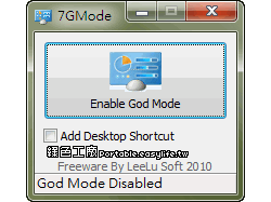 之前曾經介紹過【Window 7全能設定模式。GodMode讓您更方便設定系統】,GodMode的確是一種很方便的設定模式(only Windows7),想要設定GodMode除了手動自己建立一個資料夾(GodMode.{ED7BA470-8E54-465E-825C-99712043E01C})之外,也可以依靠軟體簡單的產生,雖然說手動也不用花太多的時間就是了^^。 開啟軟體...... [閱讀更多]