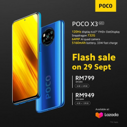 不要錯過了!POCO X3 NFC 9月29日限時優惠:驍龍732G、120Hz刷新率、33W快充,優惠價RM799起!
