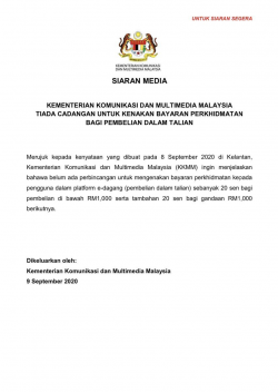 相信在昨天(9月8日)有不少民眾都看到一則關於通訊及多媒體副部長表示,政府將徵收0.02%網購服務費的新聞吧?而在今天(9月9日)通訊及多媒體部就發布文告指出,政府目前無意徵收0.02%的網購服務費。 [?????? ?????] Kementerian Komunikasi dan Multimedia Malaysia Ti...... [閱讀更多]