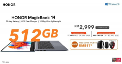 HONOR MagicBook 14推出16GB+512GB版,僅提供灰色配色,7月24日線上開賣,售RM2999!