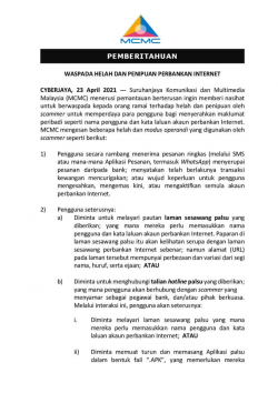 詐騙手段層出不窮!MCMC公開詐騙手法,提醒大眾避免墜入假冒銀行的圈套!
