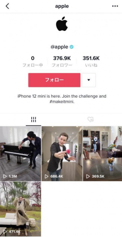你關注了嗎?Apple正式發布入住Tiktok以來的首個短視頻:內容為宣傳iPhone 12 mini 小巧尺寸!