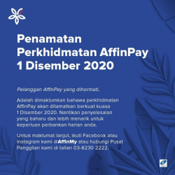 注意!Affin Bank將於12月1日關閉AffinPay支付App,並將於近期推介替代的手機App