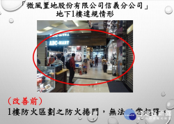 北市歲末安檢賣場、餐廳,微風百貨信義店因「防火區劃之防火捲門無法正常起降」,遭罰新台幣12萬元。(圖/台北市法務局) 為期9天的農曆春節連假,即將於2月2日(週六)登場。現在正逢民眾採買年貨、尾牙聚餐熱門時節。台北市府為保障市民消費安全,自2018年12月25日至2019年1月24日,針對台北市大型百貨賣場及餐廳,由法務局消保官會同市府各相關局...... [閱讀更多]