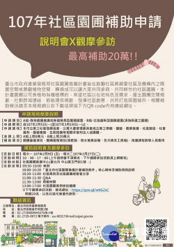 107年度北市社區園圃推廣補助申請起跑 最高可得20萬元補助
