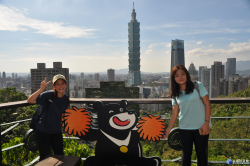 世大運吉祥物「熊讚」遊象山 眺望台北地標101