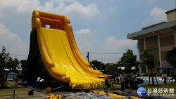 迎接兒童狂歡節開幕 屏東藝術館出現巨無霸滑水道