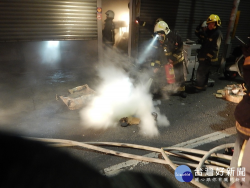 (圖/屏東縣政府消防局提供) 屏東縣潮州鎮公園路161號於10日凌晨4時許發生倉庫火警,潮州分隊接獲派遣人車立即出勤。搶救人車抵達時,濃濃白煙由倉庫竄出無明顯火勢,指揮官立即指派人員使用圓盤切割器破壞鐵捲門並佈署兩水線入室,搶救入室人員搭配使用熱顯像儀迅速尋獲冒煙火點,因屬於不明物質冒煙而無盲從出水降溫,現場立即將不明冒煙物品移至戶外並聯絡現場關係人...... [閱讀更多]