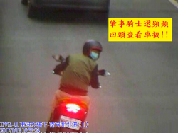 屏東東港警分局東港派出所警員王國瑞,於日前傍晚5時許接獲報案,在東港鎮台17線與中正路二段路口有交通事故,當警方抵達車禍現場時,僅有車禍一方韋姓女子受傷倒臥在現場,另一方已不見蹤影。 警員詢問韋女當時情形,稱對方撞倒他後有下車問她傷勢如何,一聽到韋女說有受傷後立即騎車逃逸,而車禍造成韋女的頭部外傷併腦震盪和四肢皆有挫傷,經警方調閱路口監視器畫面,於晚上7...... [閱讀更多]