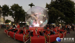 屏東公園慶祝聖誕節 聖誕老公公騎雪橇發糖果