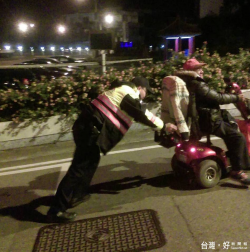 電動車沒電回不了家 暖警、民眾合力推車上坡解危