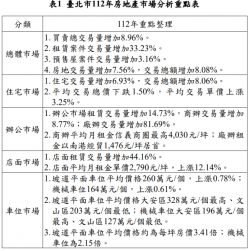 101年實價登錄制度實施以來,相關資訊已成為民眾買賣房屋最重要的參考依據。為協助各界掌握不動產市場變化及整體脈動,地政局以112年實價登錄資料為基礎,並與歷年資料進行比較,分兩大主軸進行大數據分析。 第一主軸由市場總體面出發,就實價登錄申報交易量、房地交易量及交易總額等面向,...... [閱讀更多]