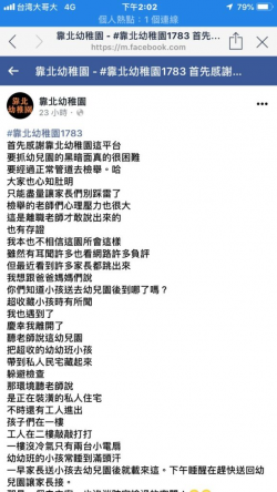 【記者爆料網/社會中心報導】台中市太平區1家通過市府評鑑、被列為「準公托」的幼兒園1名幼教員驚爆對1名年僅2歲的王姓男童,以雙腿夾頭、還朝地上重摔3、4下,造成男童受傷,網友肉搜找到這家幼兒園狂刷一星負評,還有網友PO文表示,新聞報導中的小朋友就是他的孩子,事發後的幾天半夜每兩個小時驚醒一次,每次講的話都是:「我要出去找媽媽!」讓人十分心疼,擔心孩子的傷痕會好...... [閱讀更多]