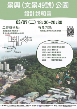 臺北市政府工務局公園處新聞稿 發稿單位:園藝科 發稿日期:112年3月10日 發稿時間:9:30 新聞聯絡人:劉玉華 承辦聯絡人:郭蘭香 聯絡電話:02-23815132*228 延伸仙跡岩綠脈 景興公園融入生活圈 景興國小旁仙跡岩山...... [閱讀更多]